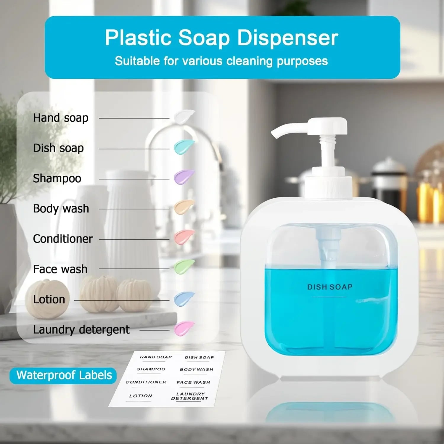 WATERPROOF LABEL FOR EASY IDENTIFICATION】Waterproof label stickers are included in the package to ensure easy organisation and quick identification of the dispenser's contents. Whether it's a bathroom toilet, kitchen sink dish soap dispenser or any other liquid, keep your small space tidy and organised.