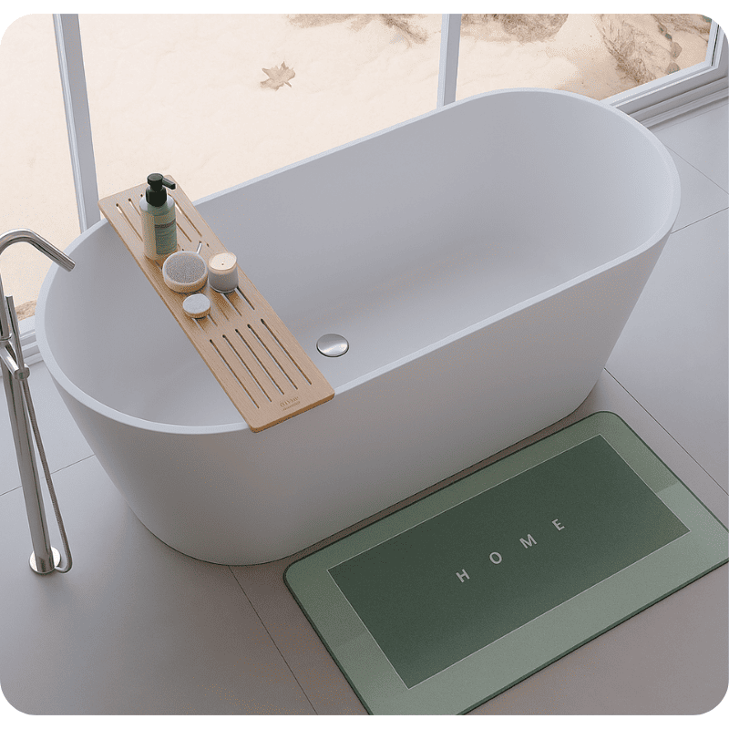 The Domanni FourSafe™ absorbs water before it spreads across your bathroom, preventing slippery and hazardous trails throughout the house.